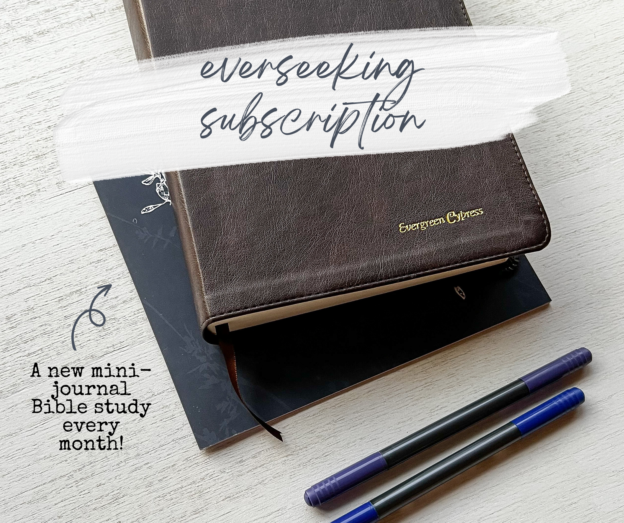 Everseeking is a monthly subscription for women that delivers a brand new 30-day “mini” Bible study journal (along with some extras!) to your doorstep. Start the month afresh with your new journal and the intentional goal of seeking God through his beautiful Word!