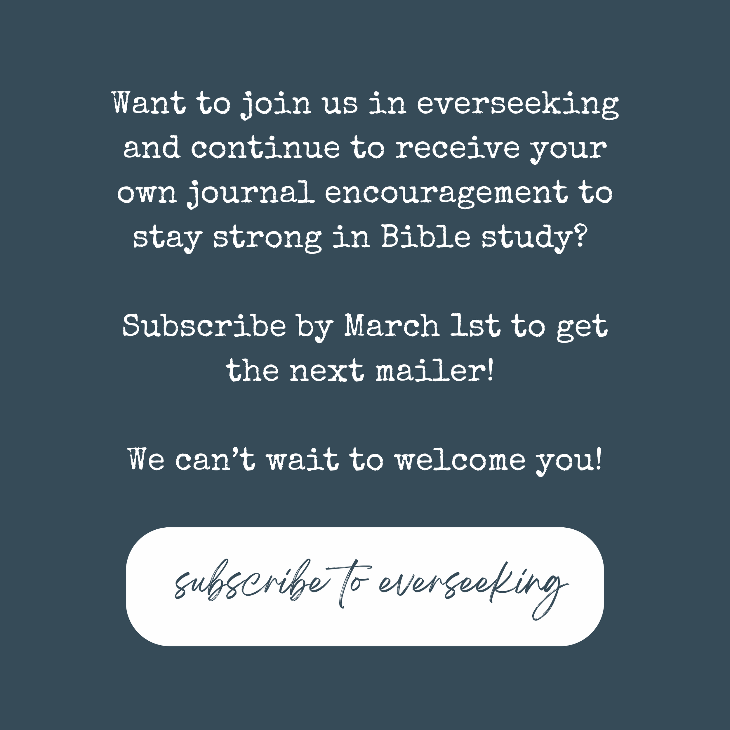 Sometimes all we need is a little extra encouragement to give us the push we need to remember and be bolstered in our time with God. We’re excited to share an addition to our everseeking subscription to hopefully do just that! Stay tuned…