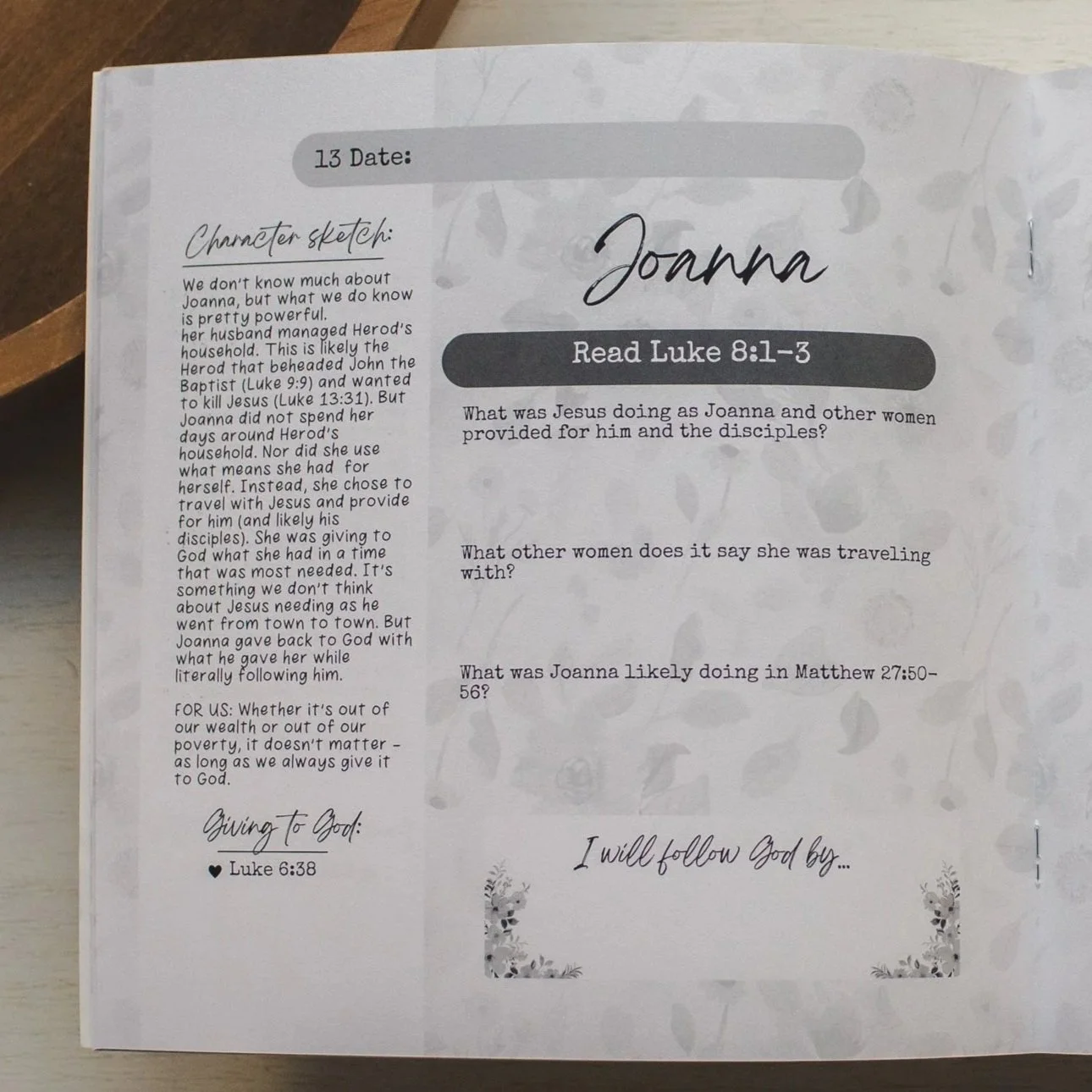 Grab your “Women of God” journal sample — we’re journaling page/day 13 today from the main study — about Joanna!