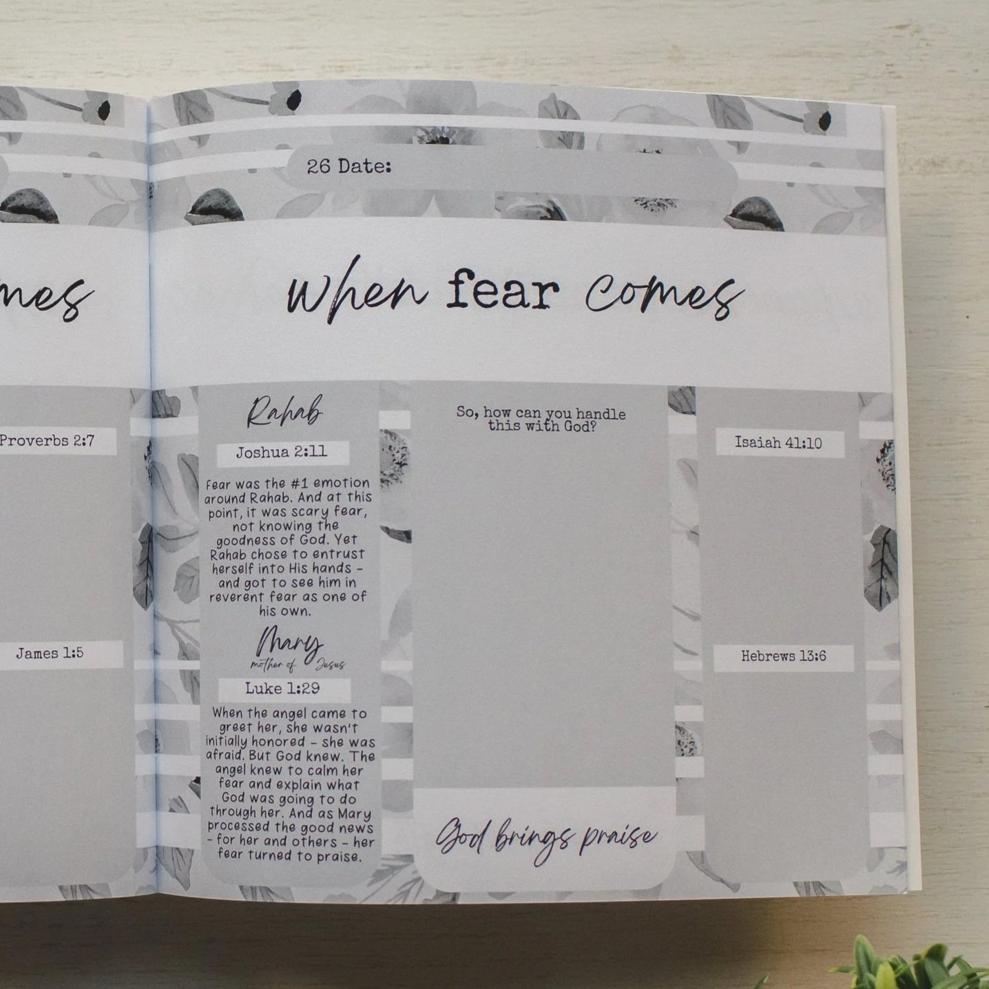 Grab your “Women of God” journal sample — we’re journaling page/day 26 today from the optional pages — “when fear comes”!